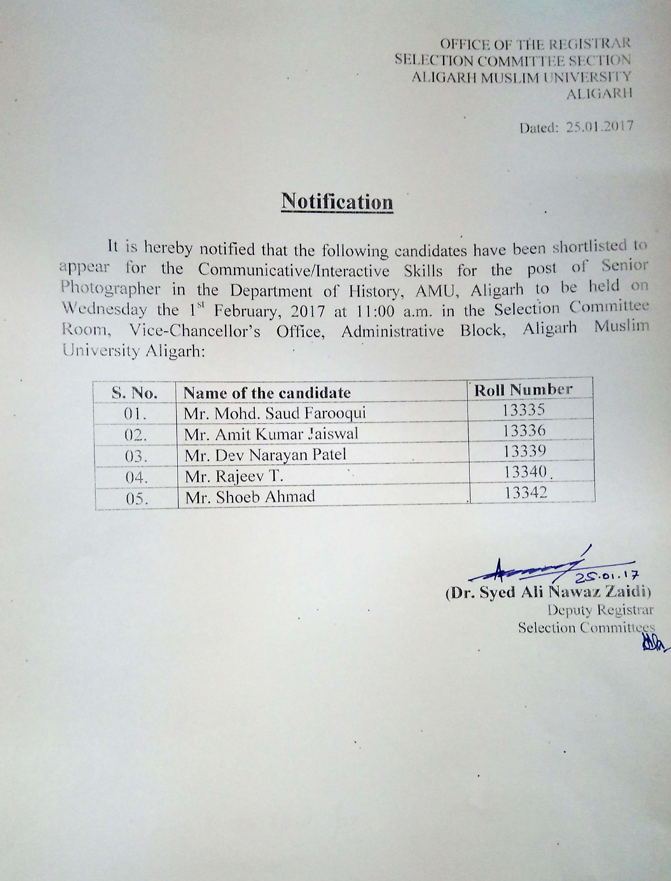 - Candidates Shortlisted for Microphotographist ,Sir Syed Academy,AMU,Aligarh