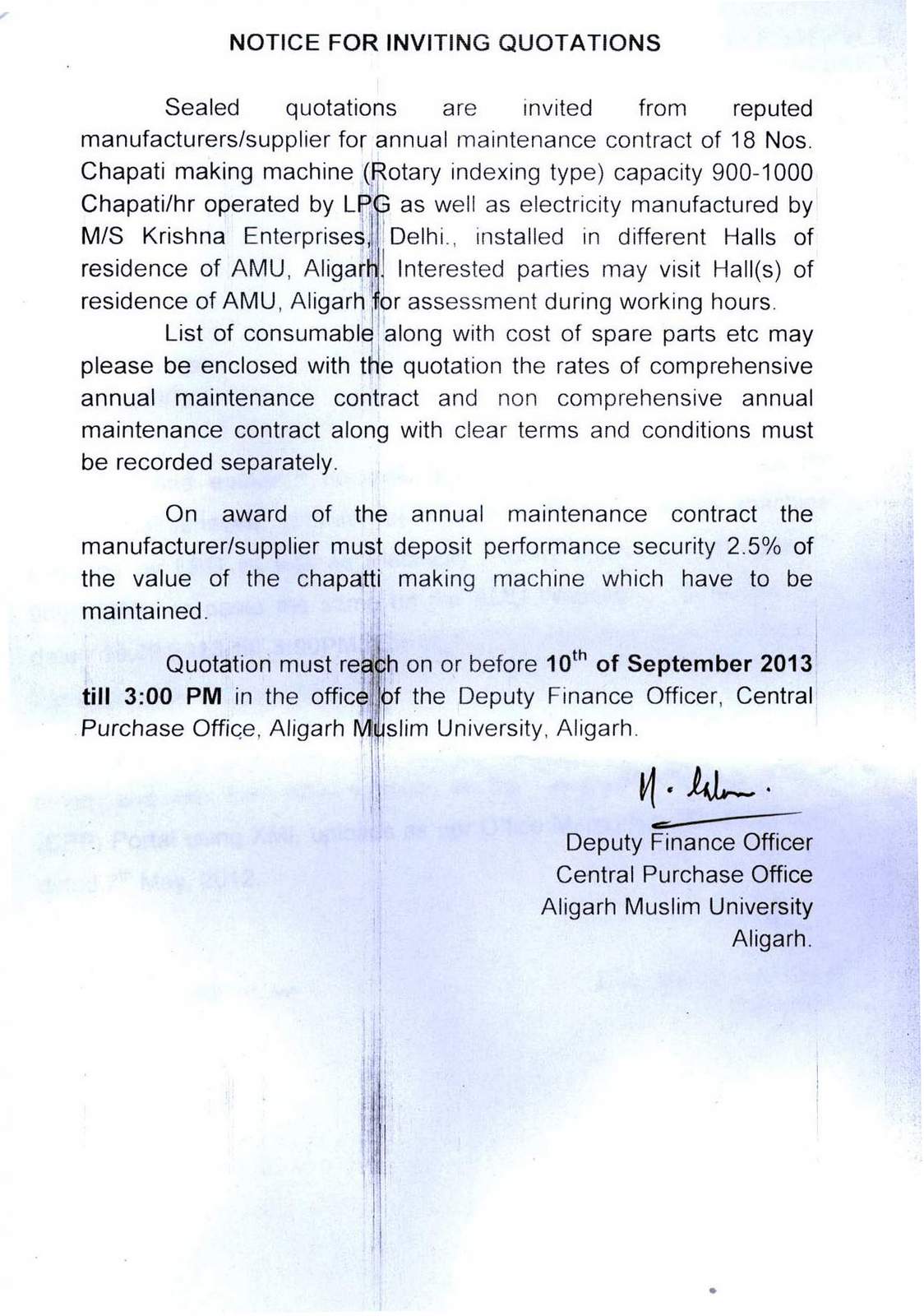 Tender - AMC (Chapati Maker) (Central Purchase Office)